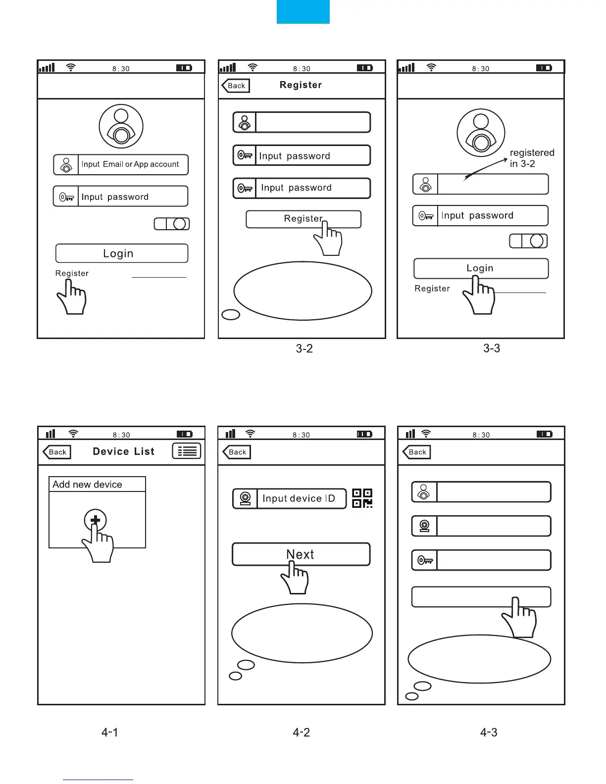 Step4. View the Camera on a Smart Phone (Open the “Sricam”App and follow these steps)