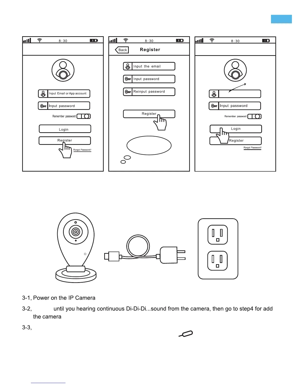 After download the App “Sricam”, please Install and register a user account for it.
