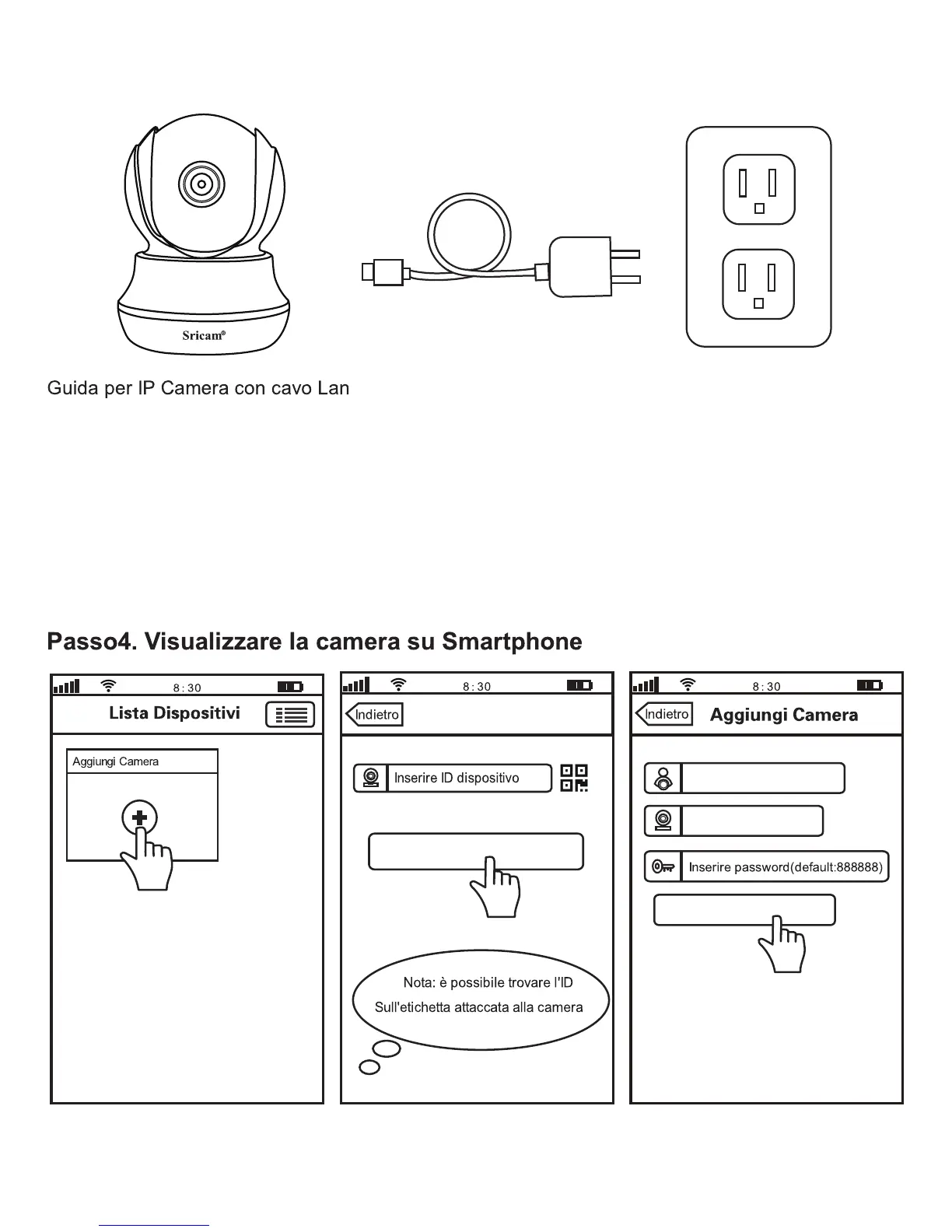 camera, poi al passo 4 ad aggiungere la camera nell’app sricam.