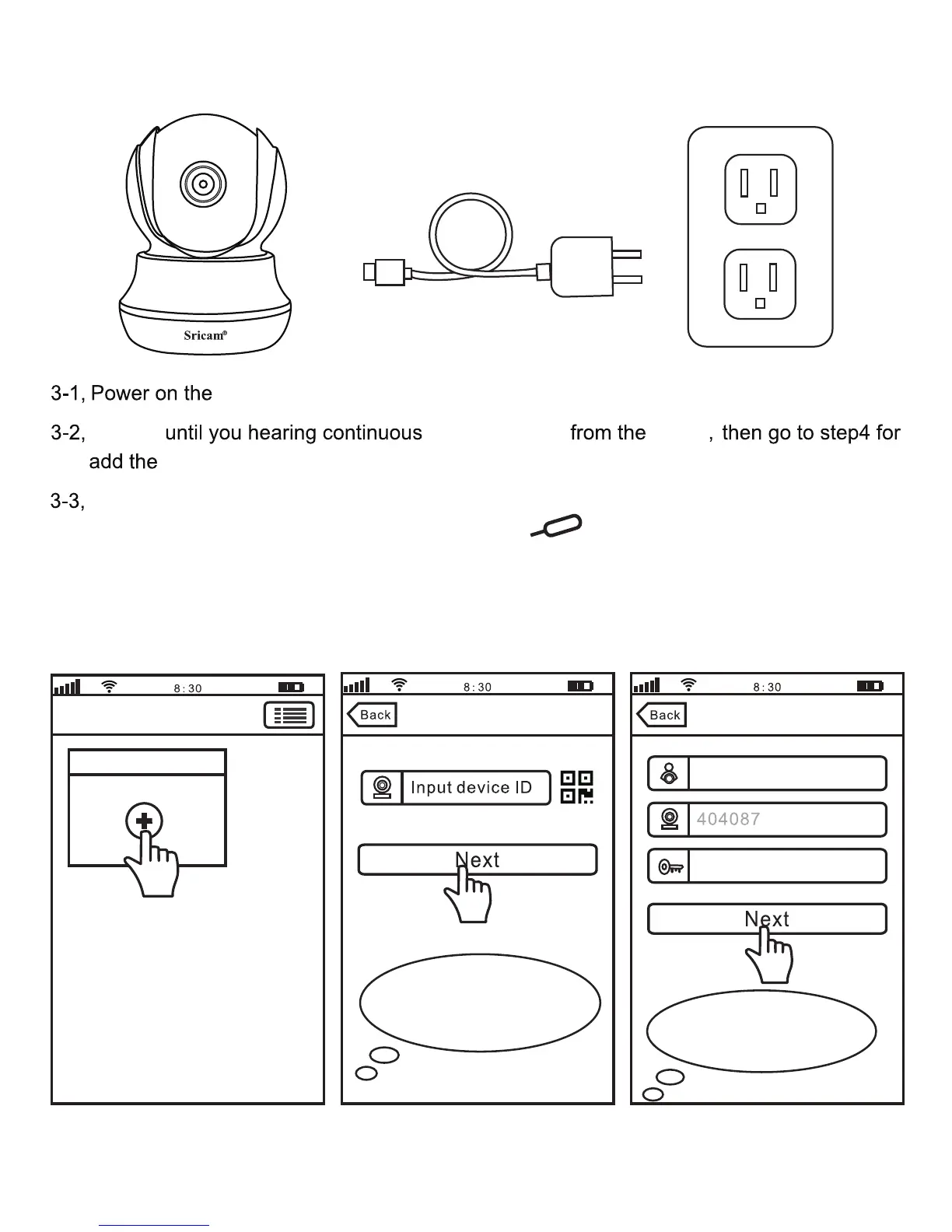 the device, and go to Step4 for add the device on App “Sricam”.