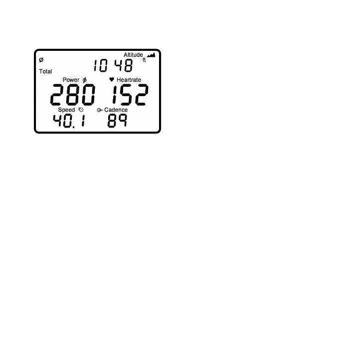 • Top Line: Training Time, Distance, Actual Altitude, Pedaling Time