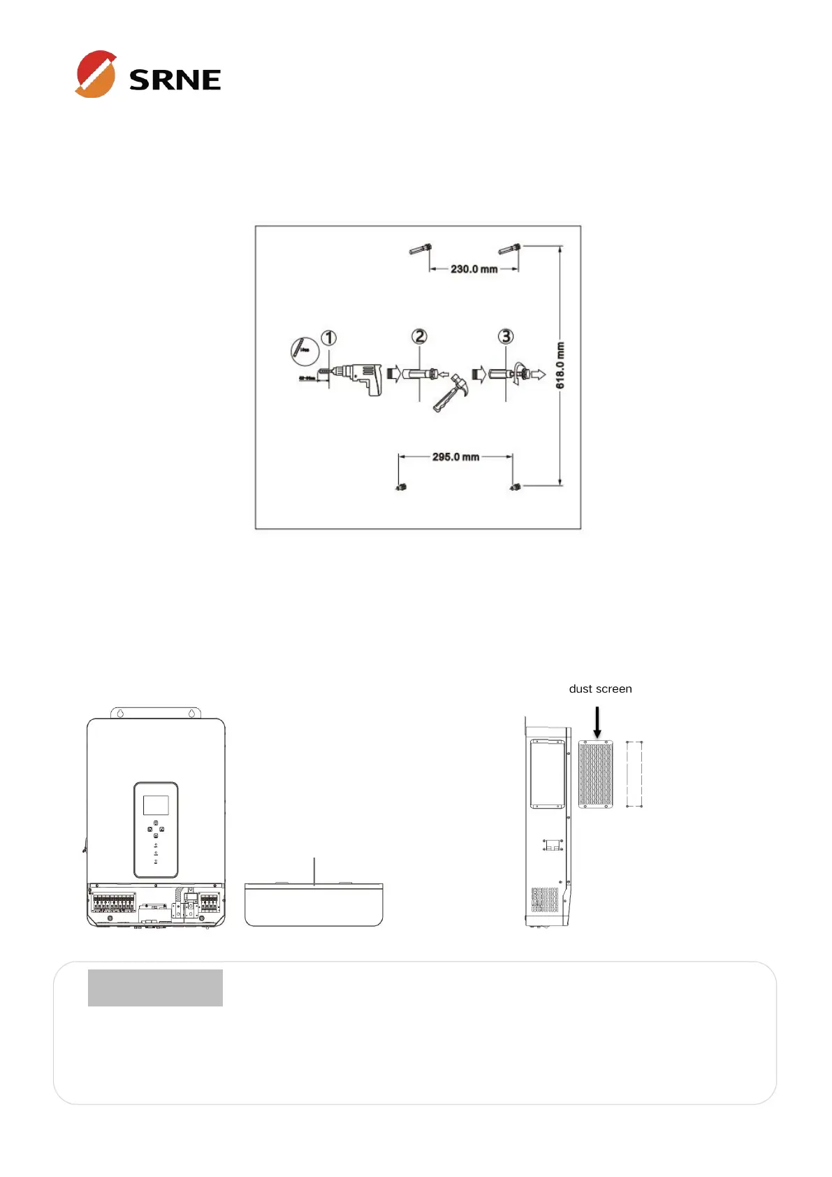 expansion screws above and 2 M5 screws below to fix the inverter.