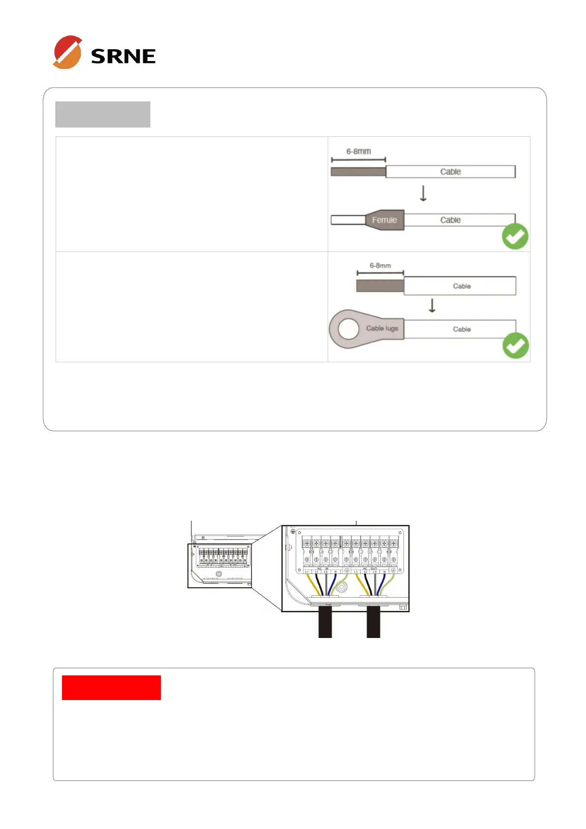 • Before connecting the AC input and output, the circuit breaker must be disconnected to