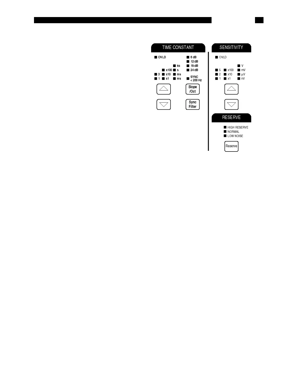 RESERVE OVLD The OVLD led in the Sensitivity section indicates that the signal amplifier