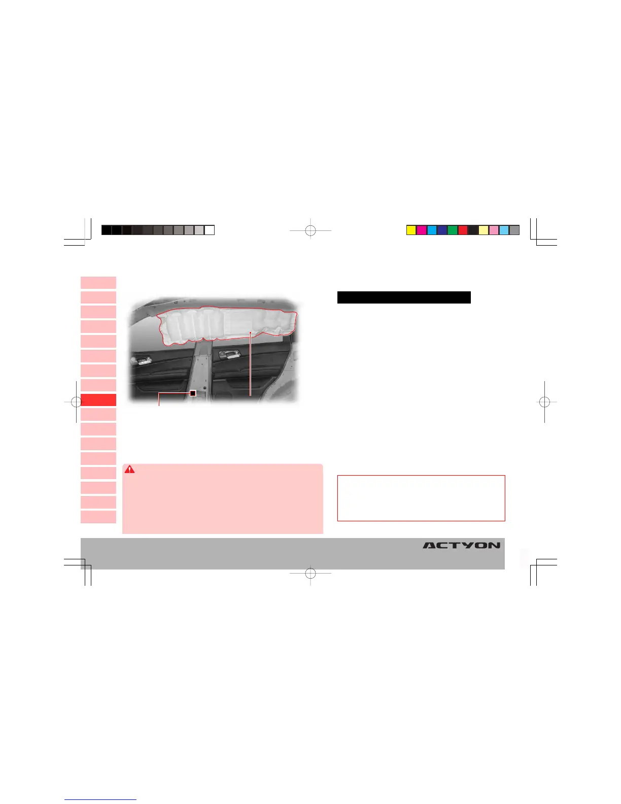 • Do not apply any impact on the side curtain sensor. The air bag might deploy.