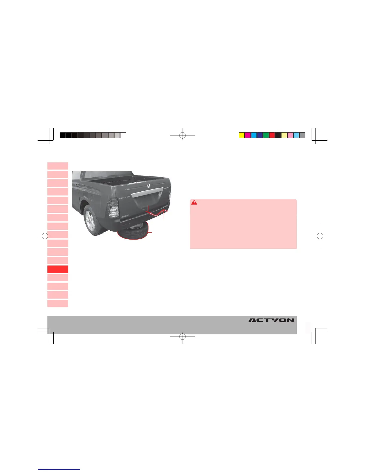 • When stowing the spare tire to the carrier, be sure to firmly se-
