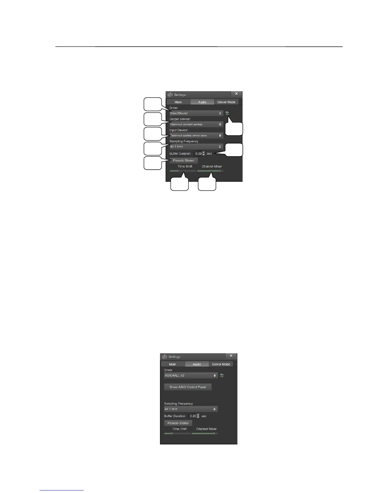 Note: These lists are present only if the DirectSound driver is selected. For an ASIO driver (if present