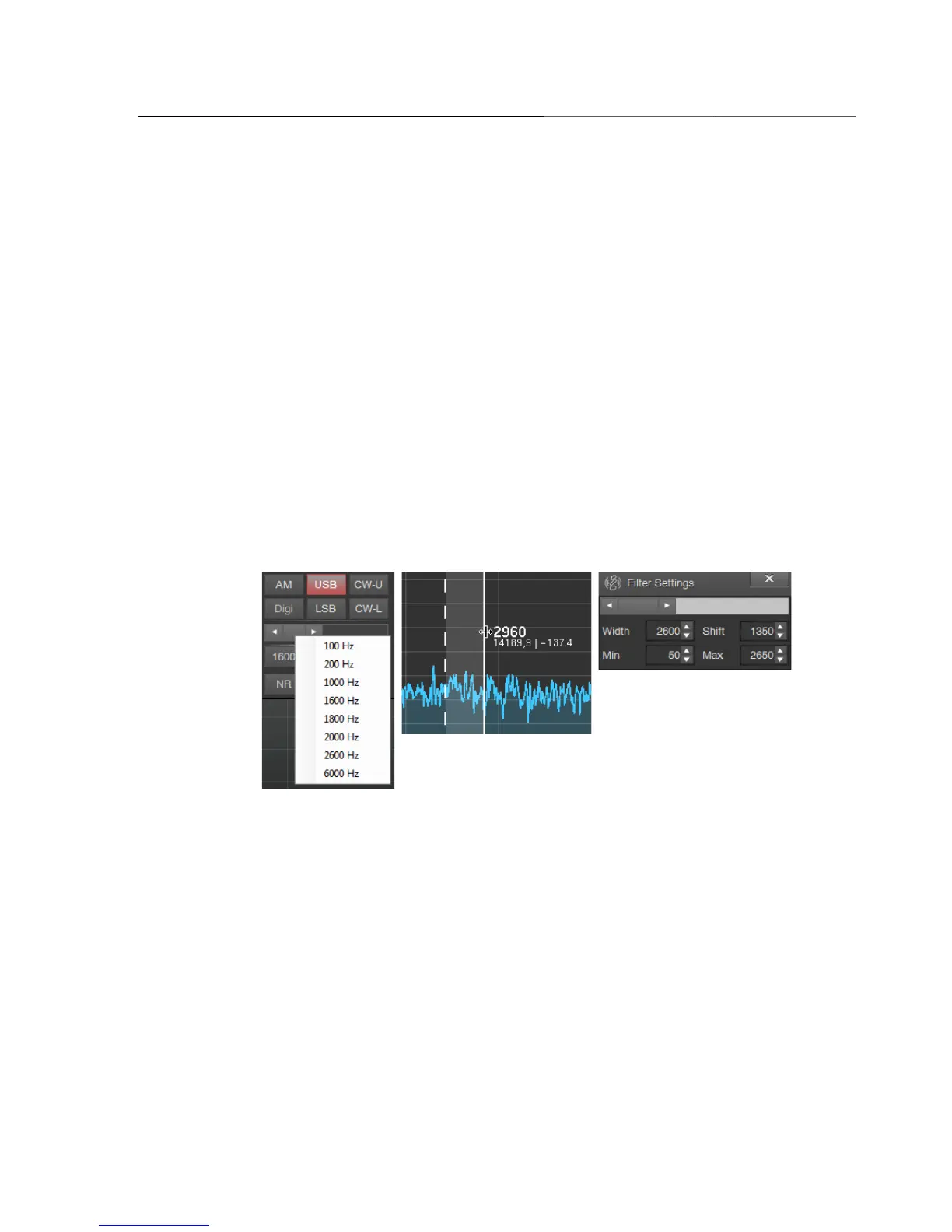 The receiving filter bandwidth can easily be adjusted with the mouse.
