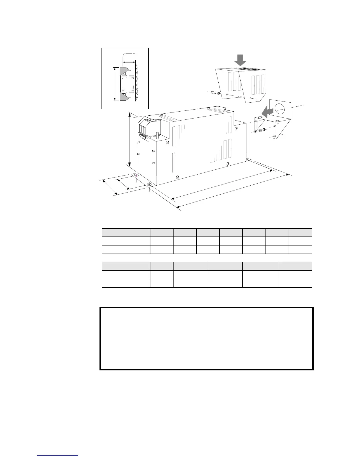 Table 3-3 External AC Supply EMC Filter Details (dimensions are in millimetres)