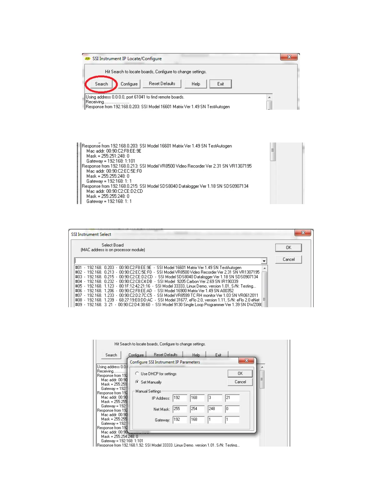 5. Click the Configure button and choose the sensor to change its IP Address settings.