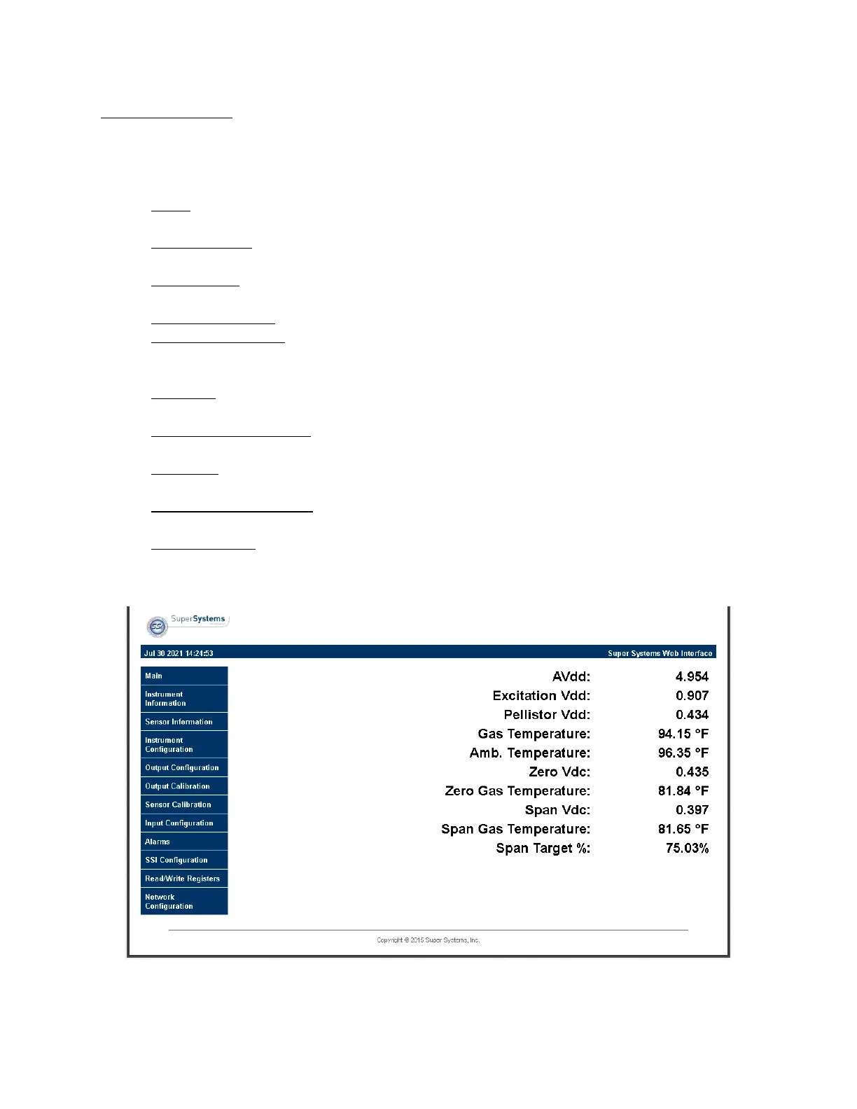 Span Vdc: (voltage direct current) A record of the span vdc reading from the most recent