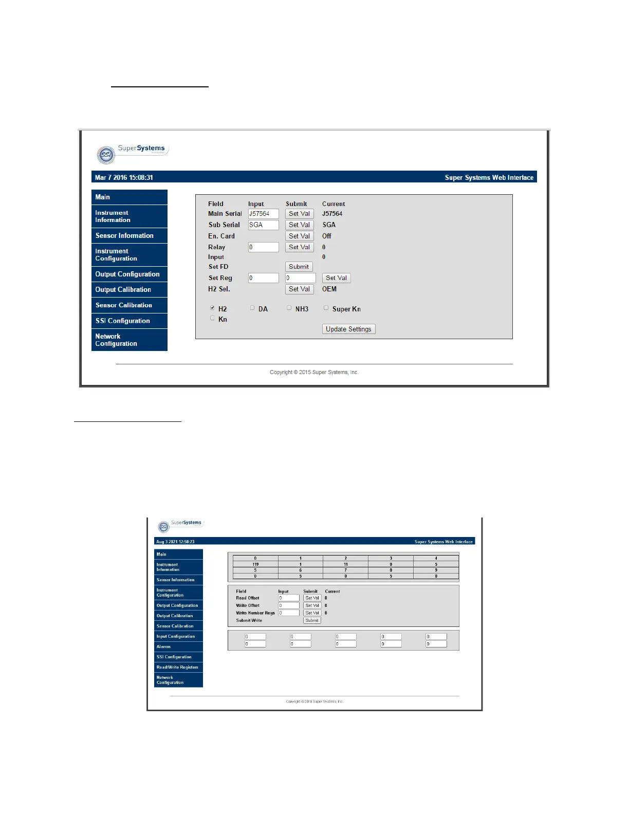 Please contact SSi before attempting to make any changes to the settings on this page.
