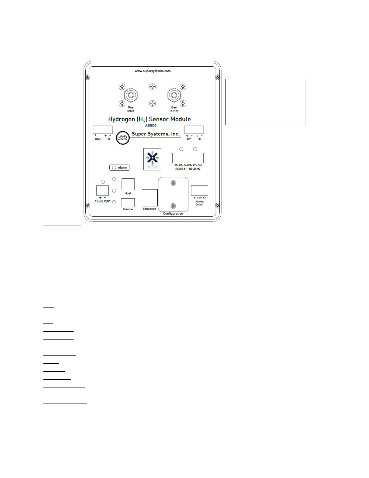 10-30 VDC: This is the port to supply power to the SGSM.