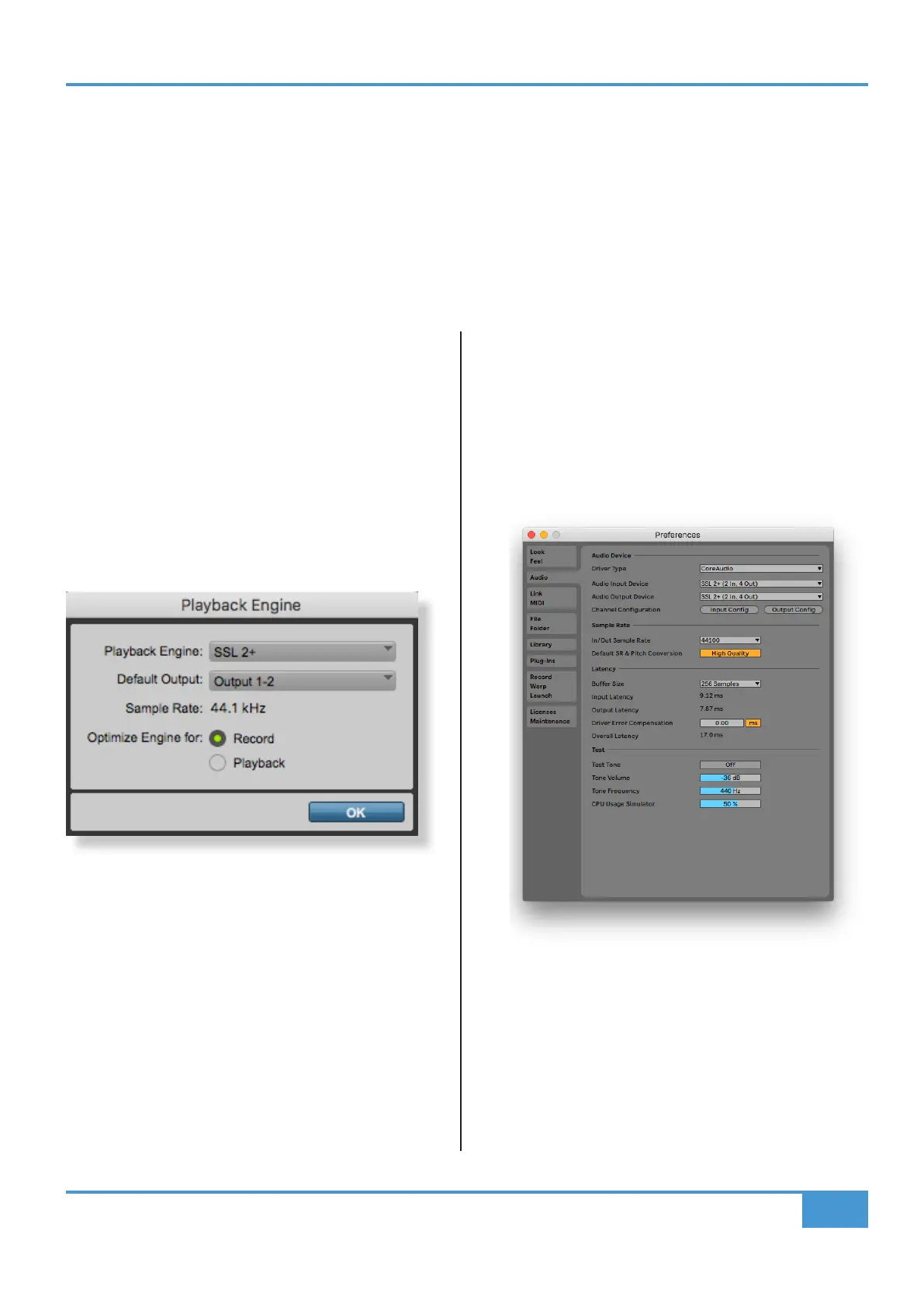 playback settings. Below are examples in Pro Tools | First and Ableton Live Lite. If you are unsure, please refer to your DAW's User