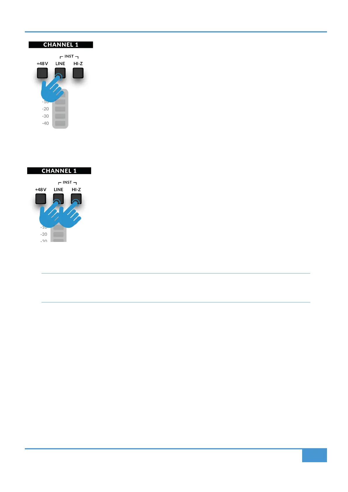 When recording an electric guitar or bass, engaging the HI-Z switch alongside the LINE switch changes the
