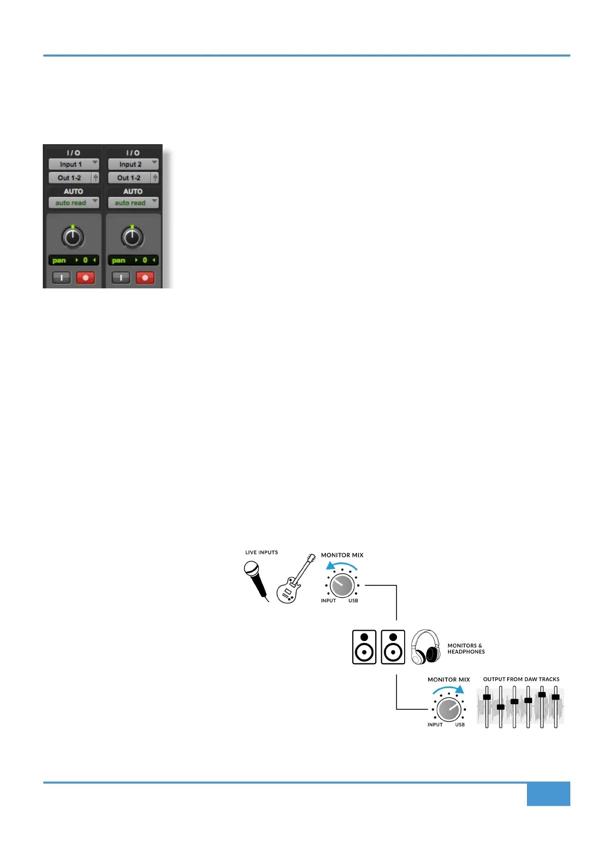 Often when recording, you'll need a way of balancing the input (microphone/instrument) against the tracks playing back from the