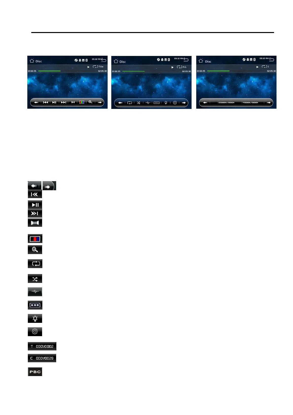 In VCD mode, touch it can choose REP 1 => REP DIR => REP ALL.