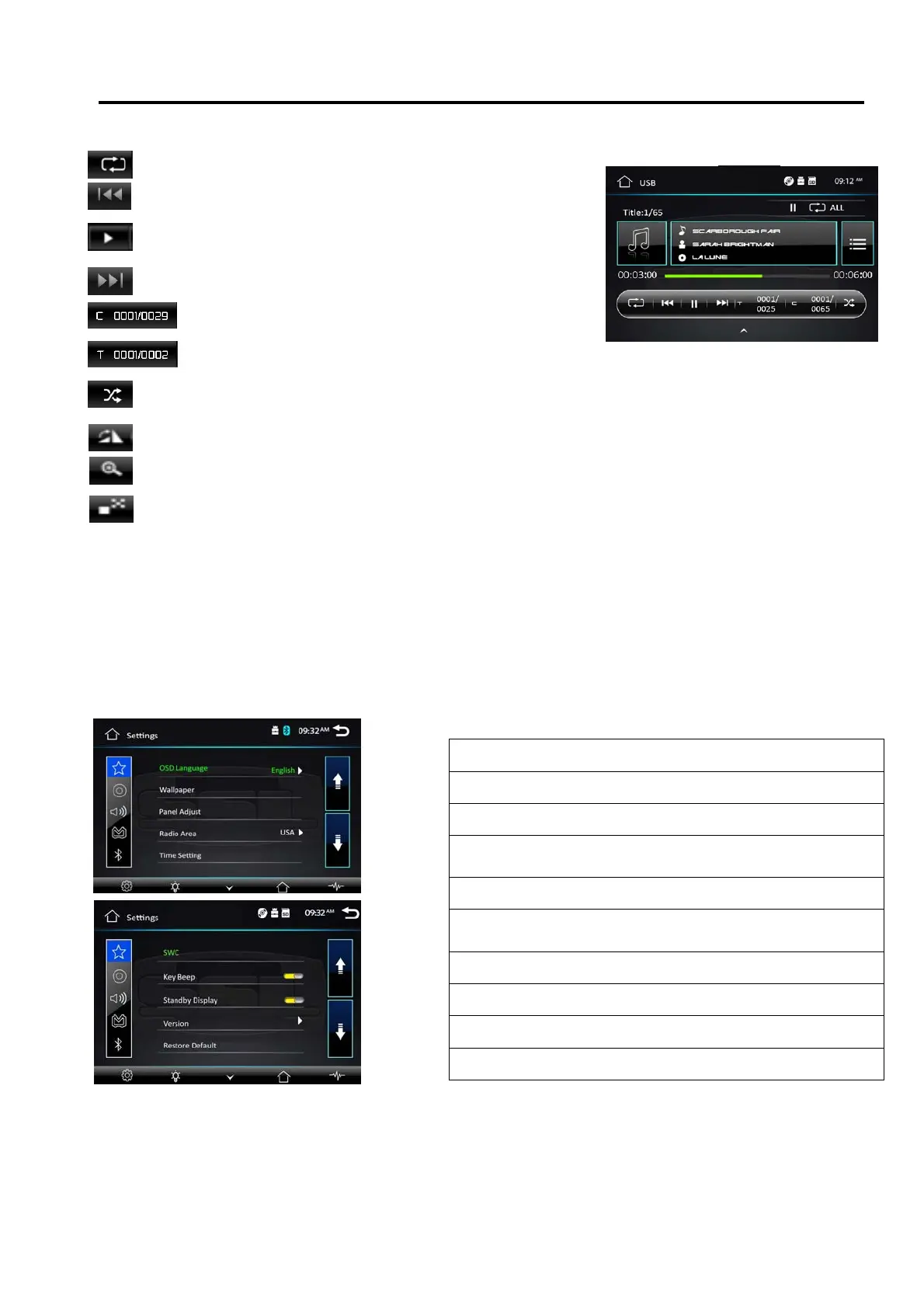 When a file of USB or SD card is played (music, video, photo), the screen will show following interface: