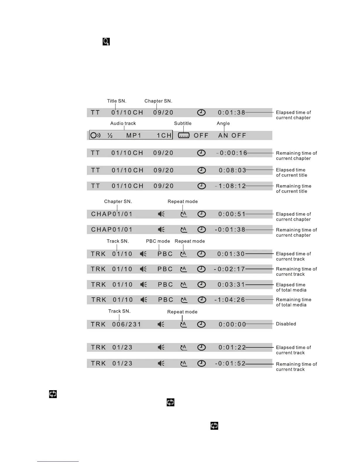 repeat mode between REP CHAPTER, REP TITLE, REP ALL and REP OFF.