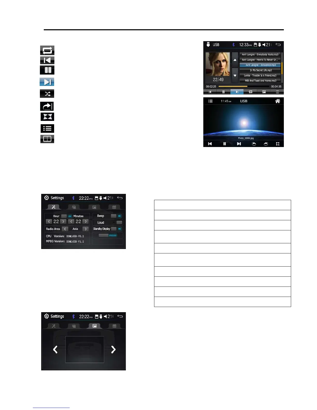 When a file of USB or SD card is played (music, video, photo), the screen will show following interface: