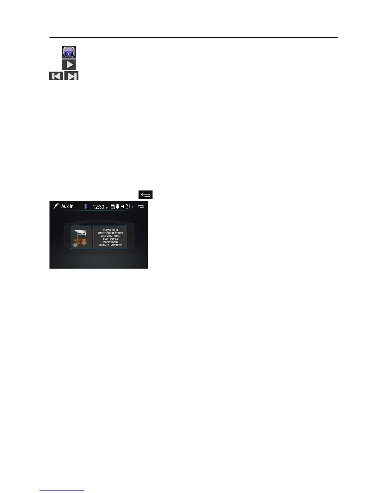 To start Aux-In Mode, tap Aux-In icon from main menu screen. connect the external audio signal source