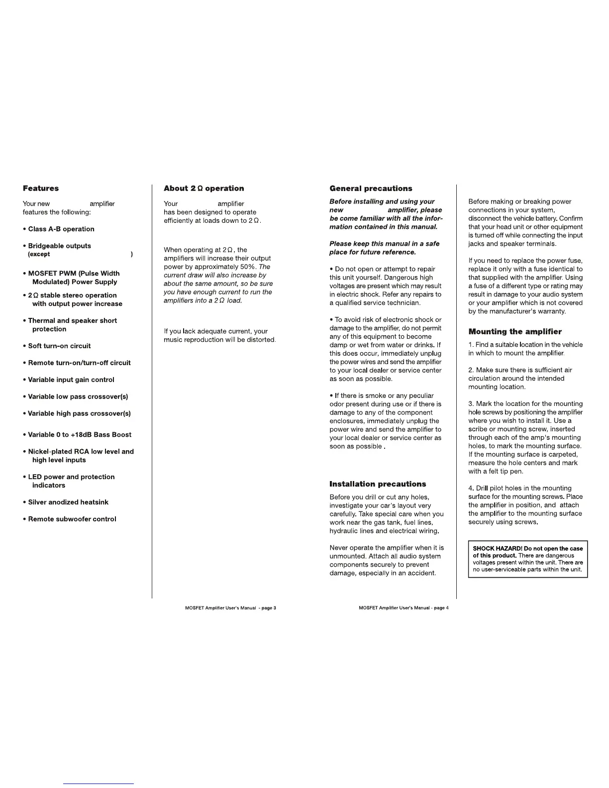Ssl EV 2.1000 - Features; About 2 Ω operation; General precautions; Installation precautions