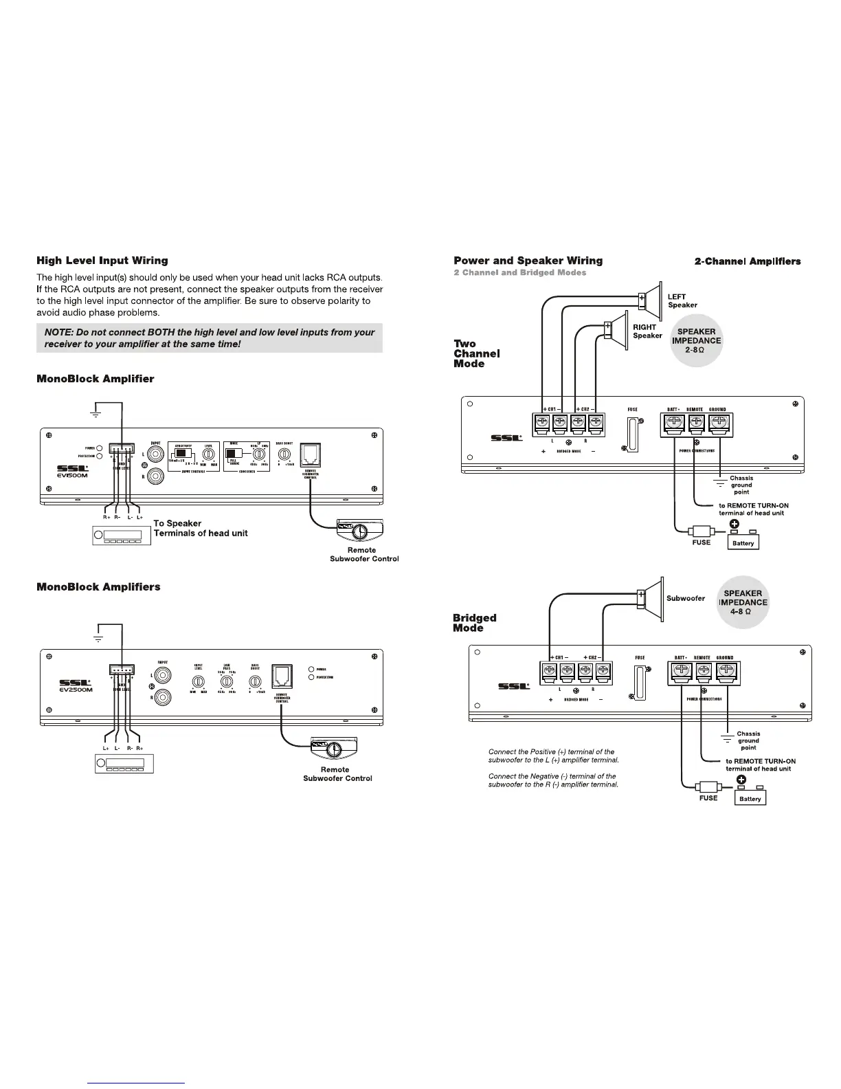 Ssl EV Series - Power and Speaker Wiring Diagrams; MonoBlock Amplifier Wiring; 2-Channel and Bridged Modes Wiring