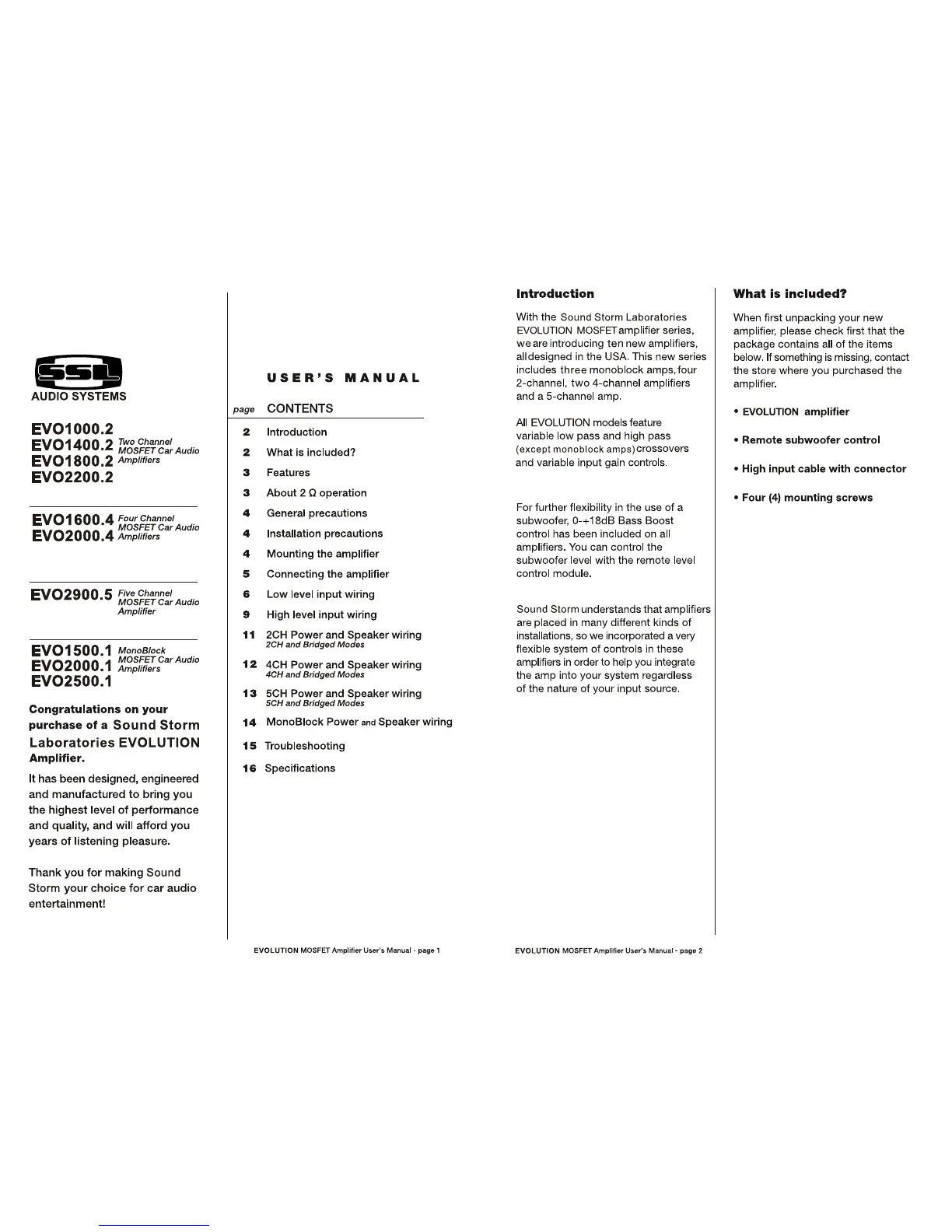 Ssl EVO1500.1 - Product Introduction and Package Contents; EVOLUTION Series Amplifier Introduction; Package Contents Checklist