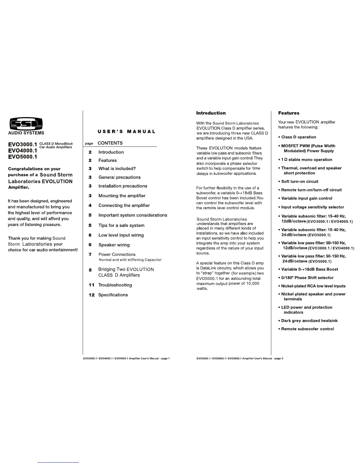 Ssl EVO3000.1 - Introduction to EVOLUTION Amplifiers; Key Features of EVOLUTION Amplifiers
