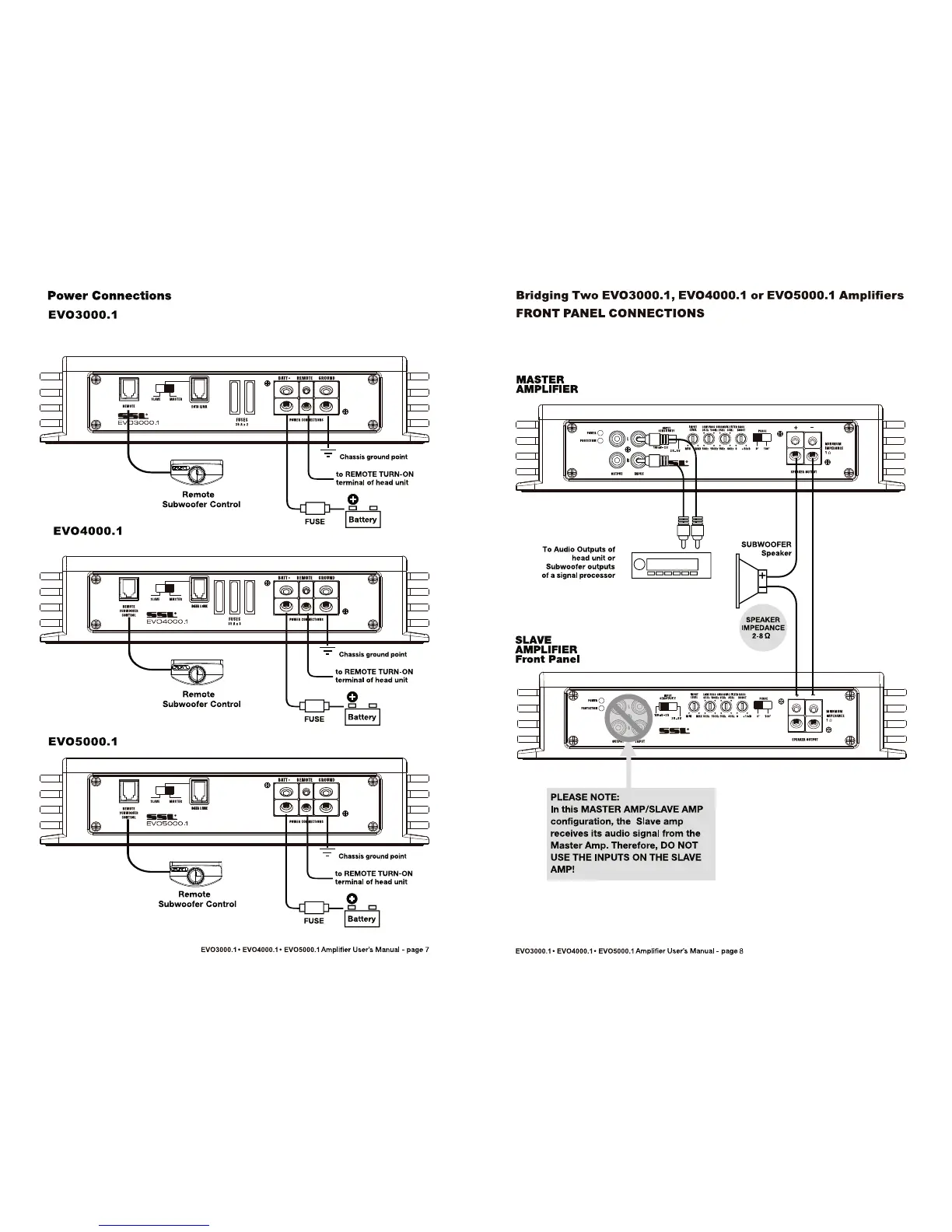 Ssl EVO3000.1 - Power Connections for EVOLUTION Models; EVO3000.1 Power Wiring Diagram; EVO4000.1 Power Wiring Diagram; EVO5000.1 Power Wiring Diagram