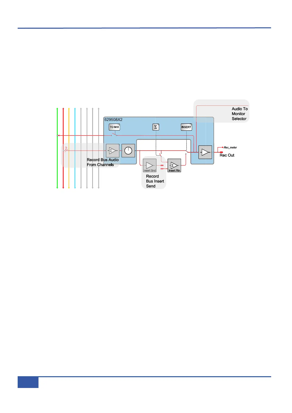 monitoring is taken from the 629508 assembly which is shaded blue on the left hand side of the diagram. Audio from the channels