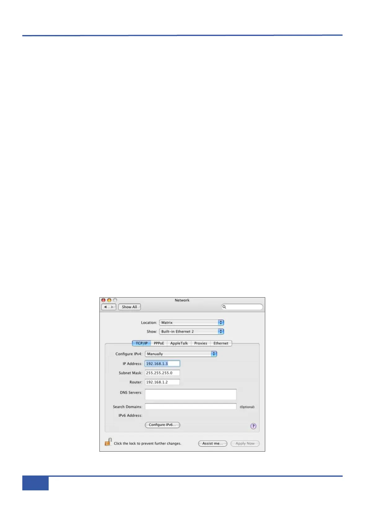 ® Next select the Ethernet port to which you have connected Matrix and configure as shown below: