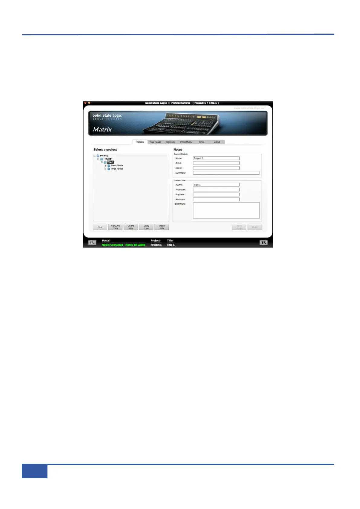 to manage the way in which Matrix is configured for a particular recording, using the Matrix Remote. There are six tabs in the