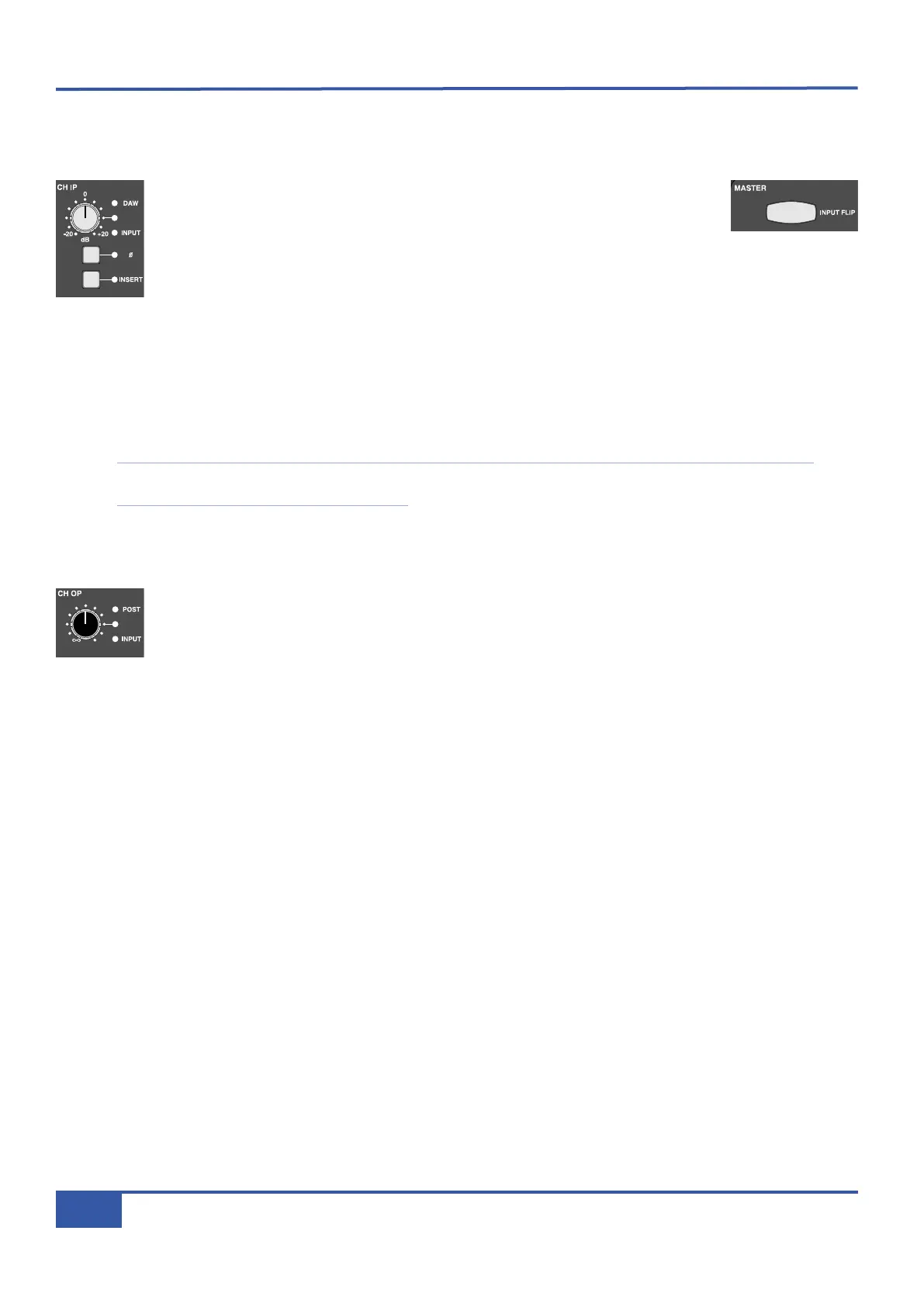 input that is referred to wherever the INPUT label appears on the desk. To swap inputs to the DAW return,