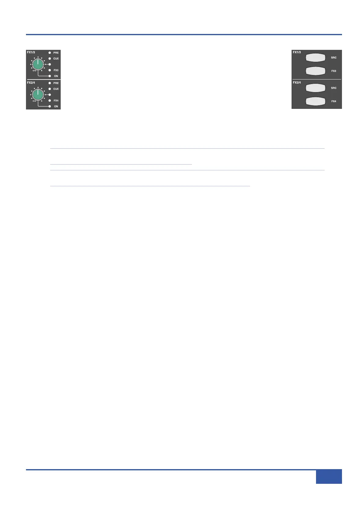 When an FX3 or FX4 bus is pressed, the source selection and gain for that signal feed remain unchanged.
