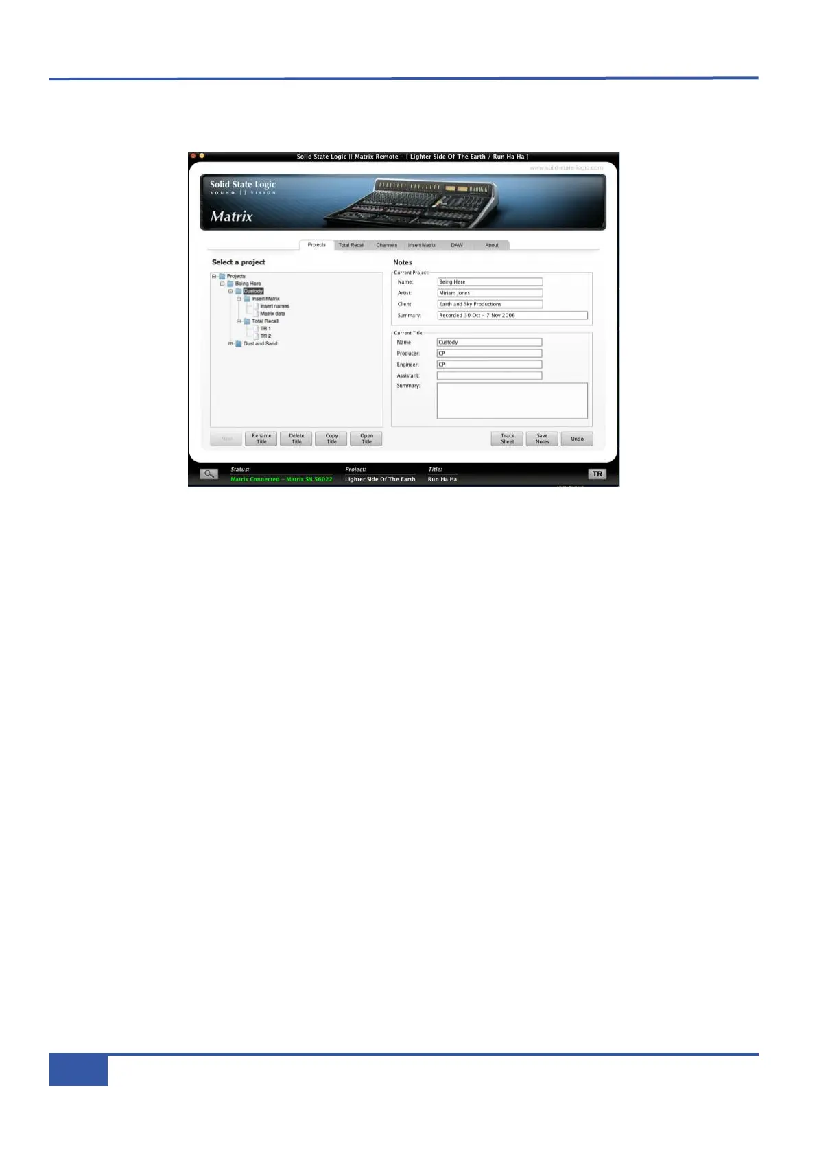 Recall, Channels and Insert Matrix tabs (the ‘Current Title’). Thirdly, it is where you store session notes.