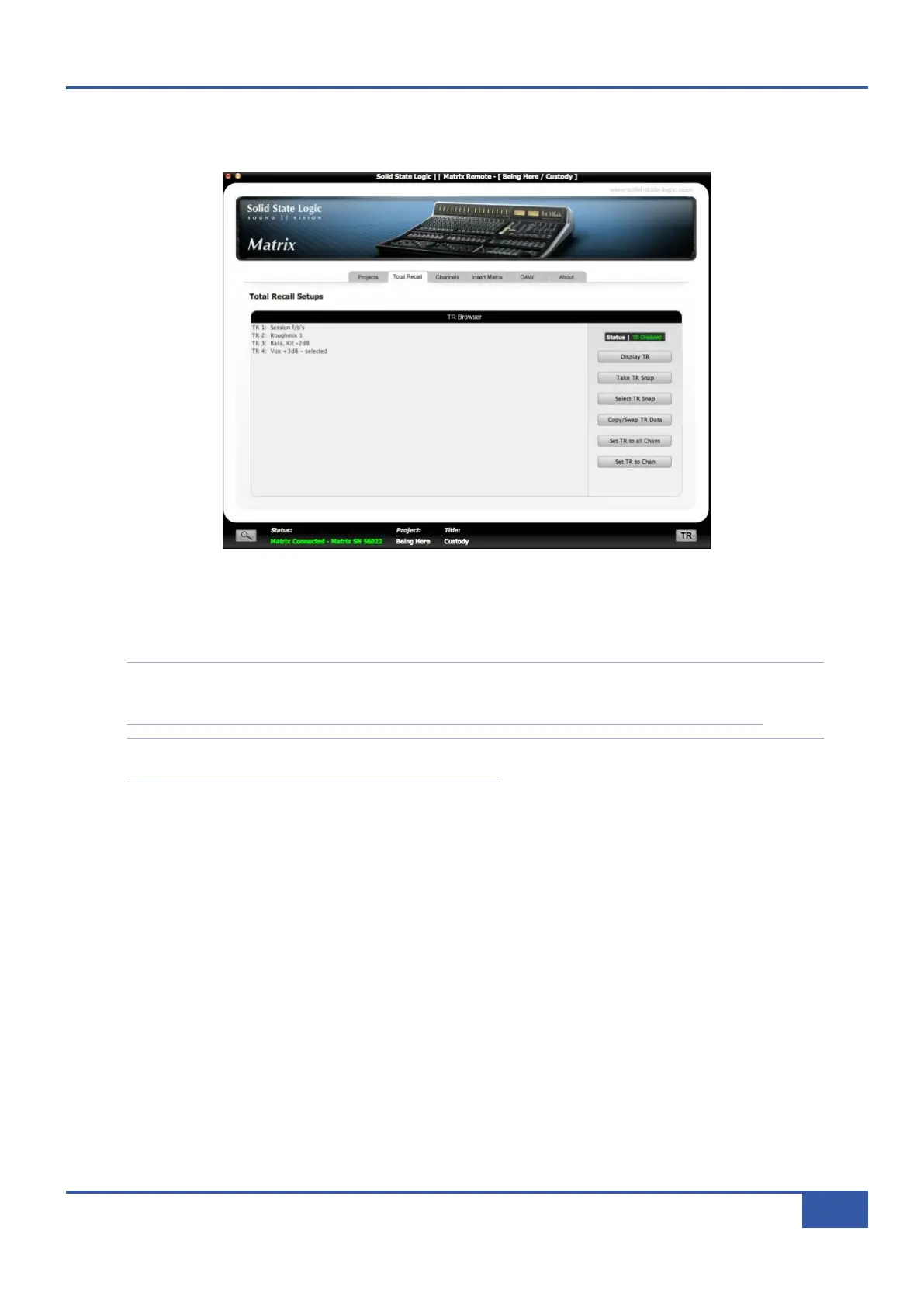 A number of the TR functions described over the following pages can be accessed directly from the Matrix console using