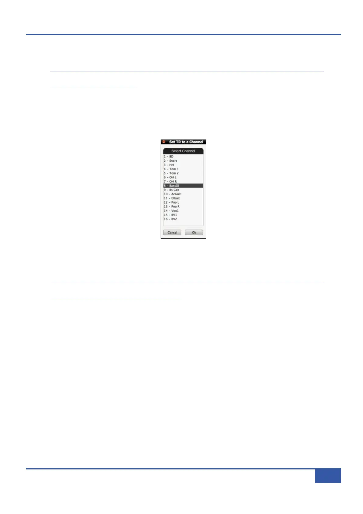 Pressing Set TR to Chan brings up the following pop-up which allows you to recall all the settings within the snapshot related