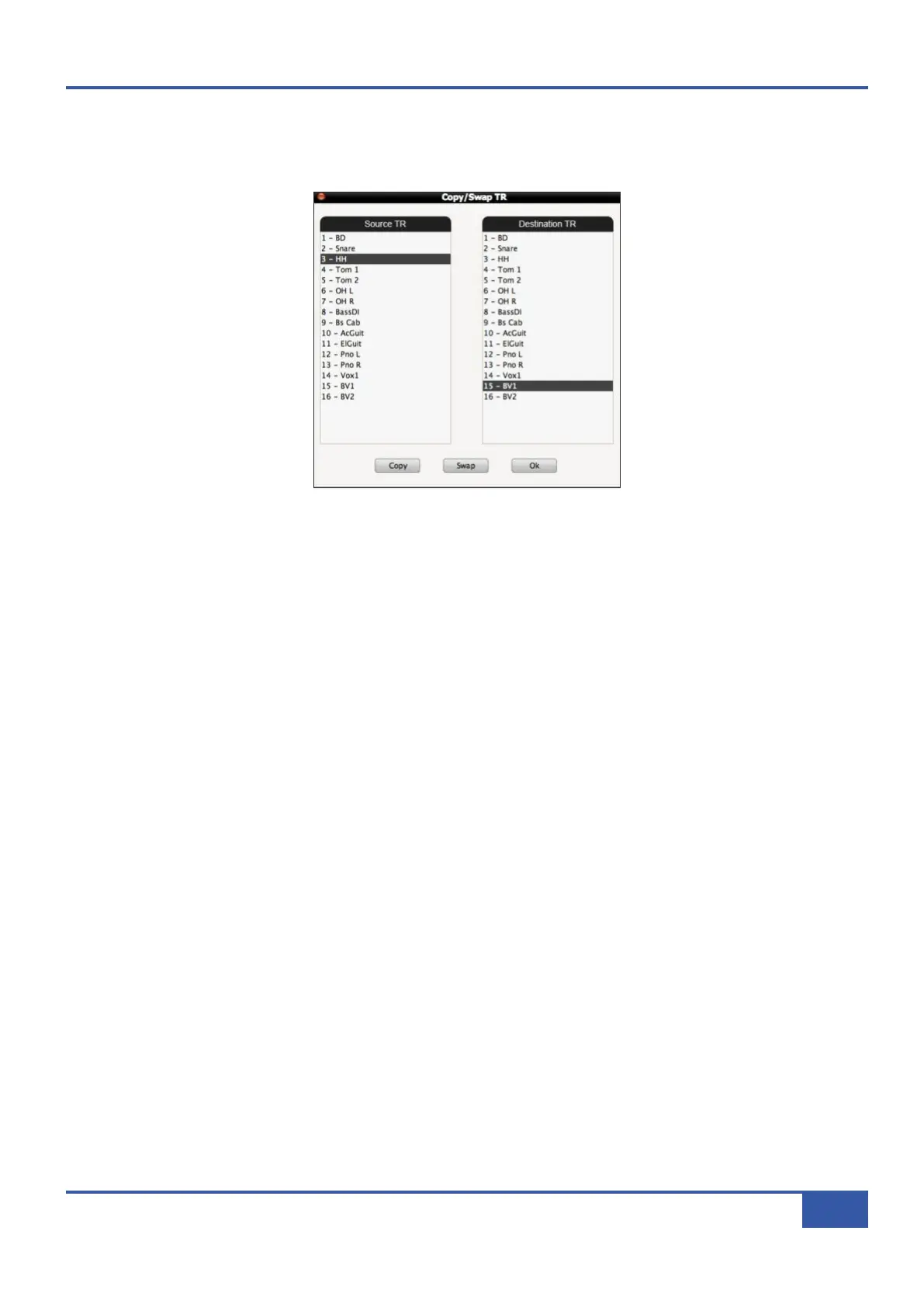 To swap a channel’s settings with another channel, select one of the channels in the Source TR column and the other in the