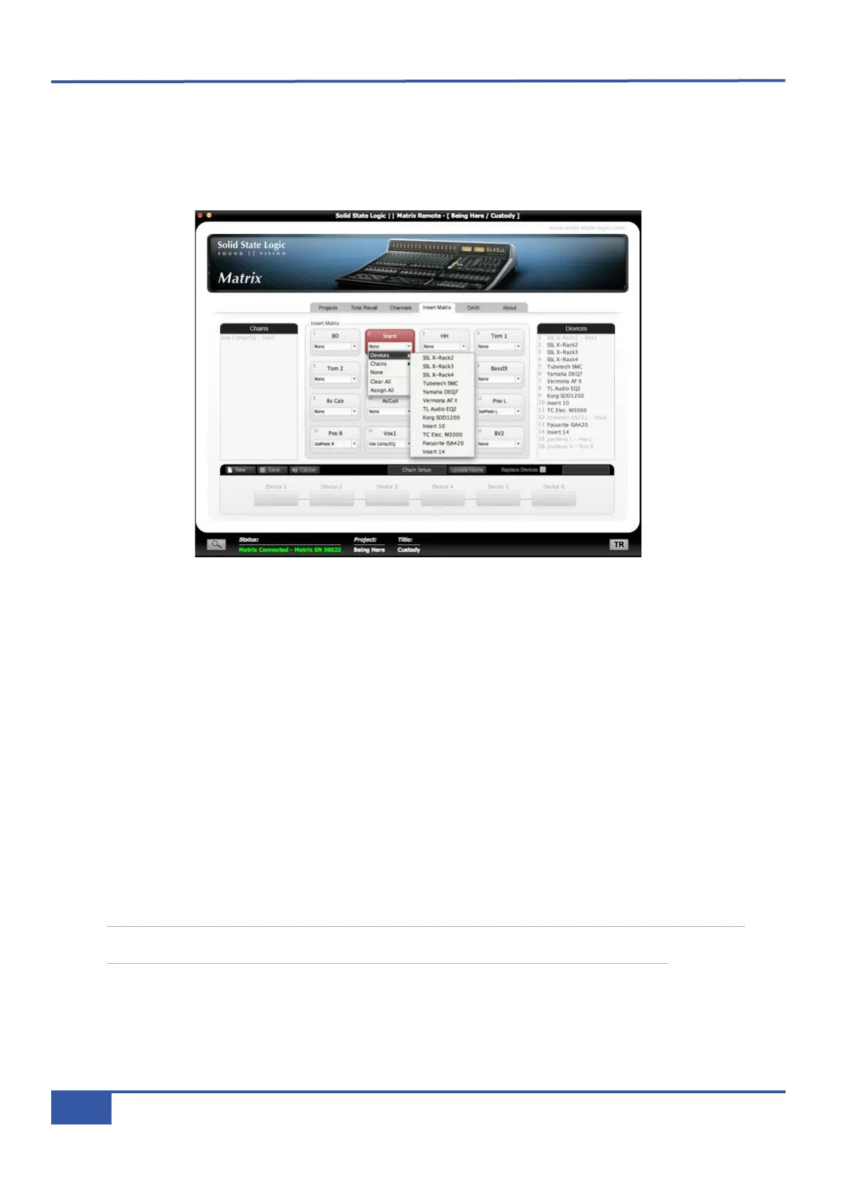 Note that once you have configured the external signal processing for a Matrix channel, you have to drop the Devices into