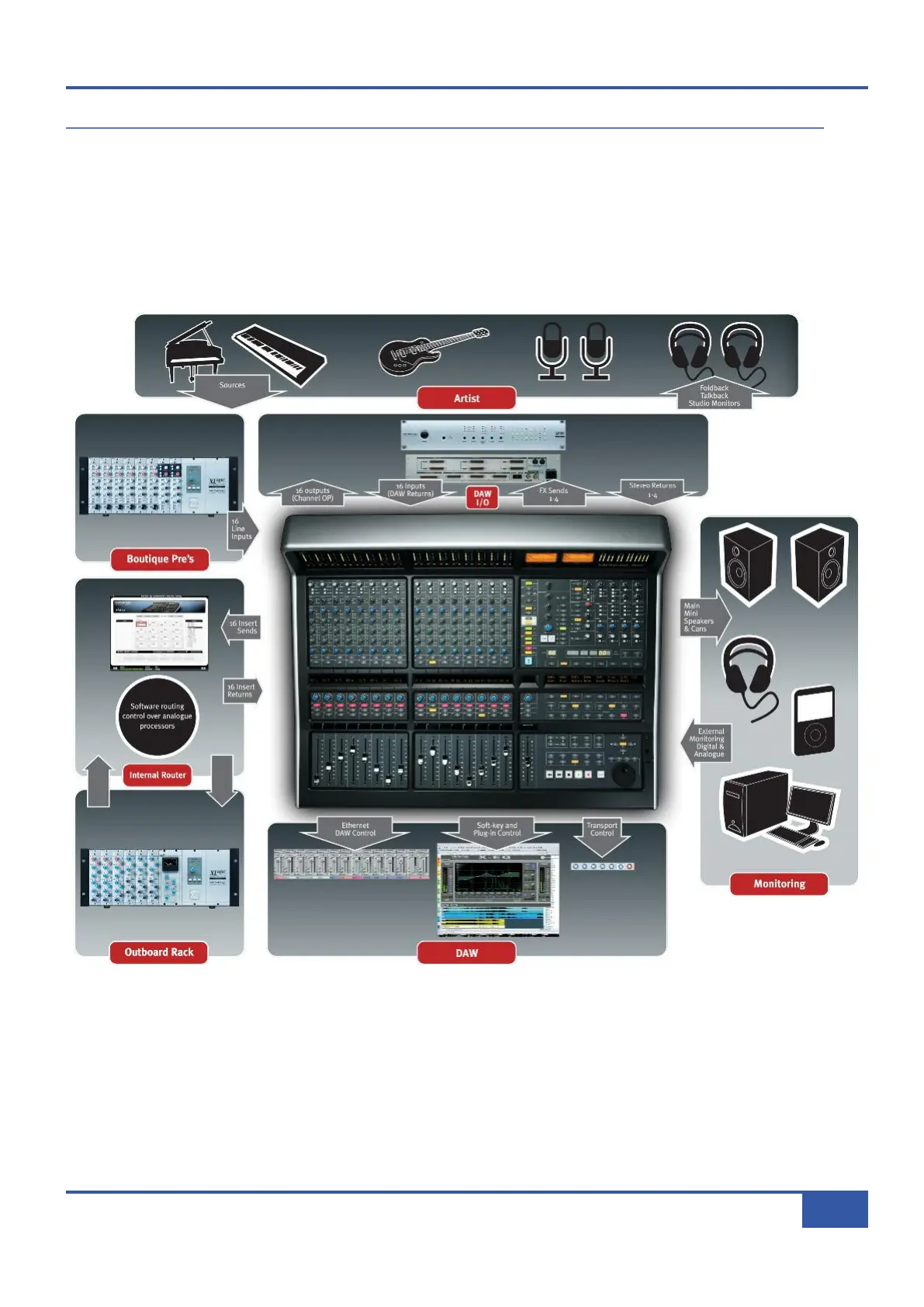 There are a number of ways in which Matrix can be set up to fit into your studio environment. The diagram below outlines the