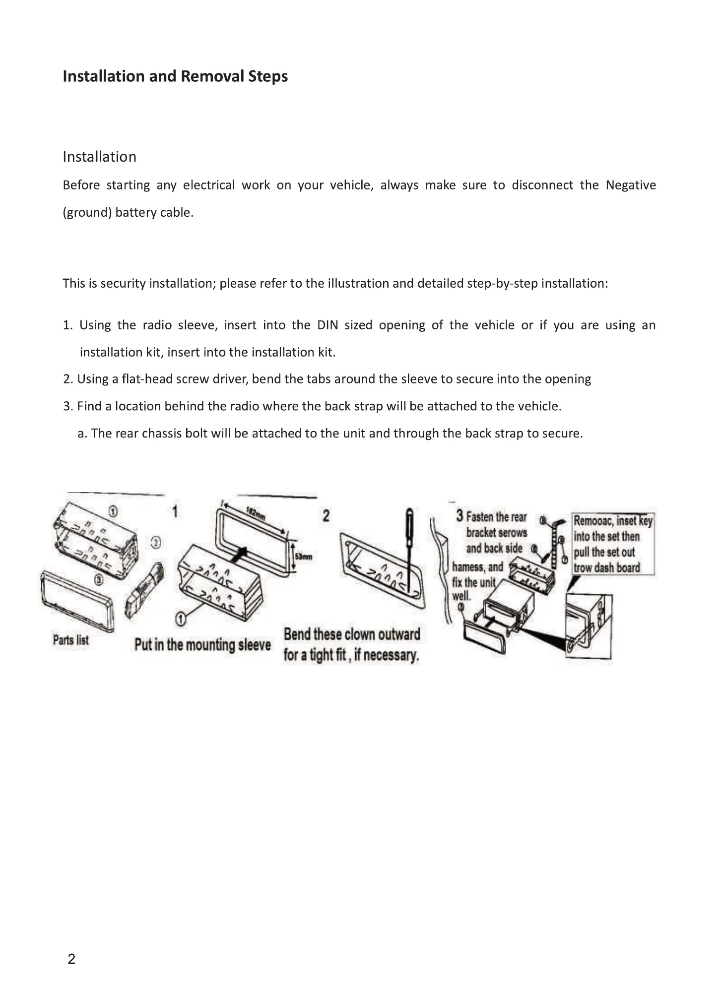 1. Using the radio sleeve, insert into the DIN sized opening of the vehicle or if you are using an
