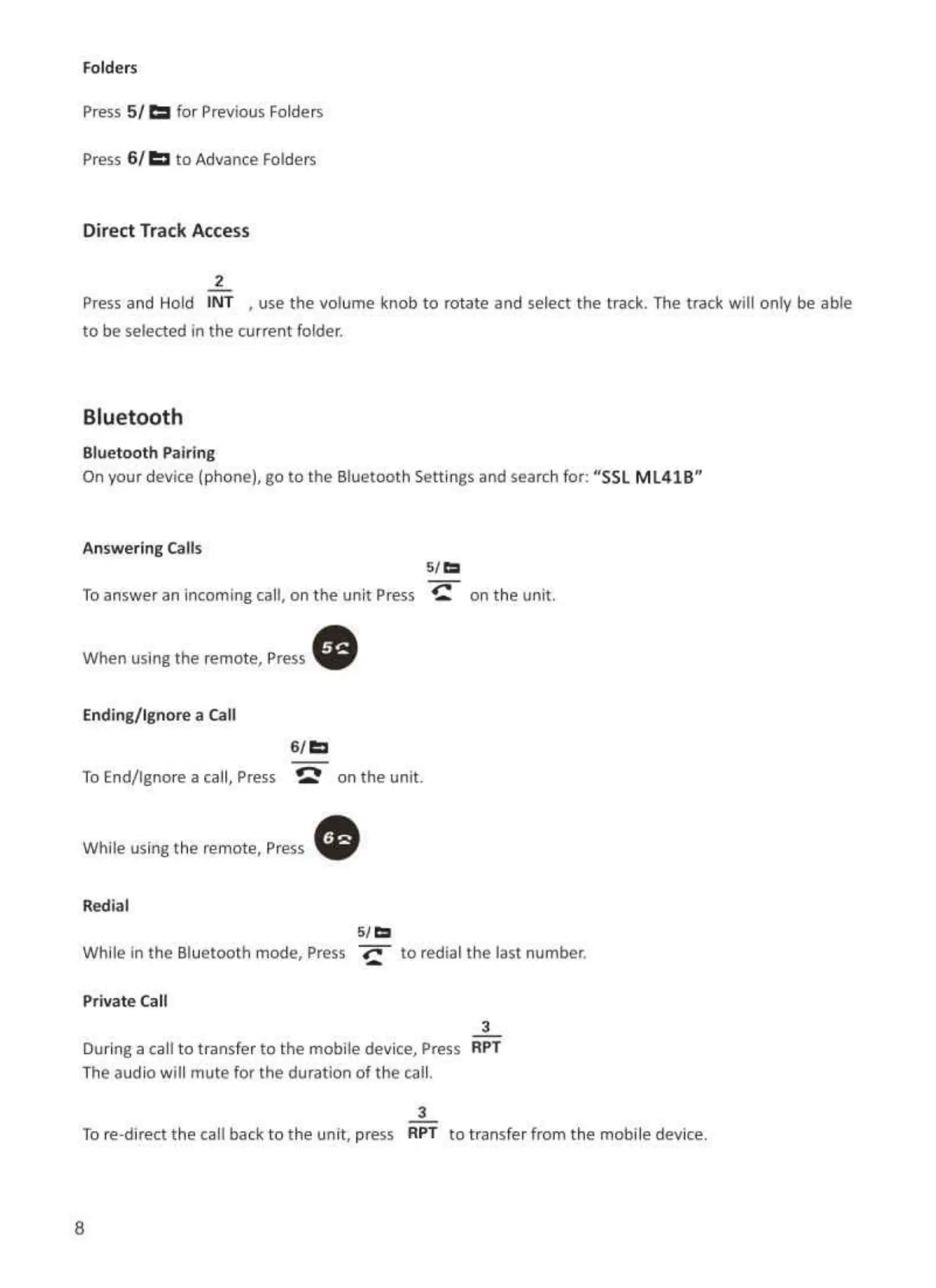 TOre-direct the callback to the unit. press RPT to transfer from the mobile device.