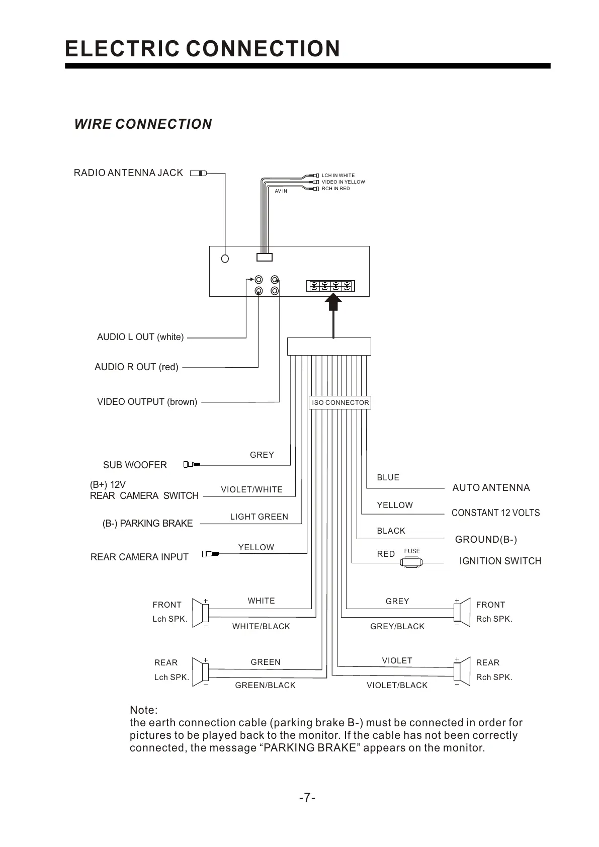 connected, the message PARKING BRAKEappears on the monitor.