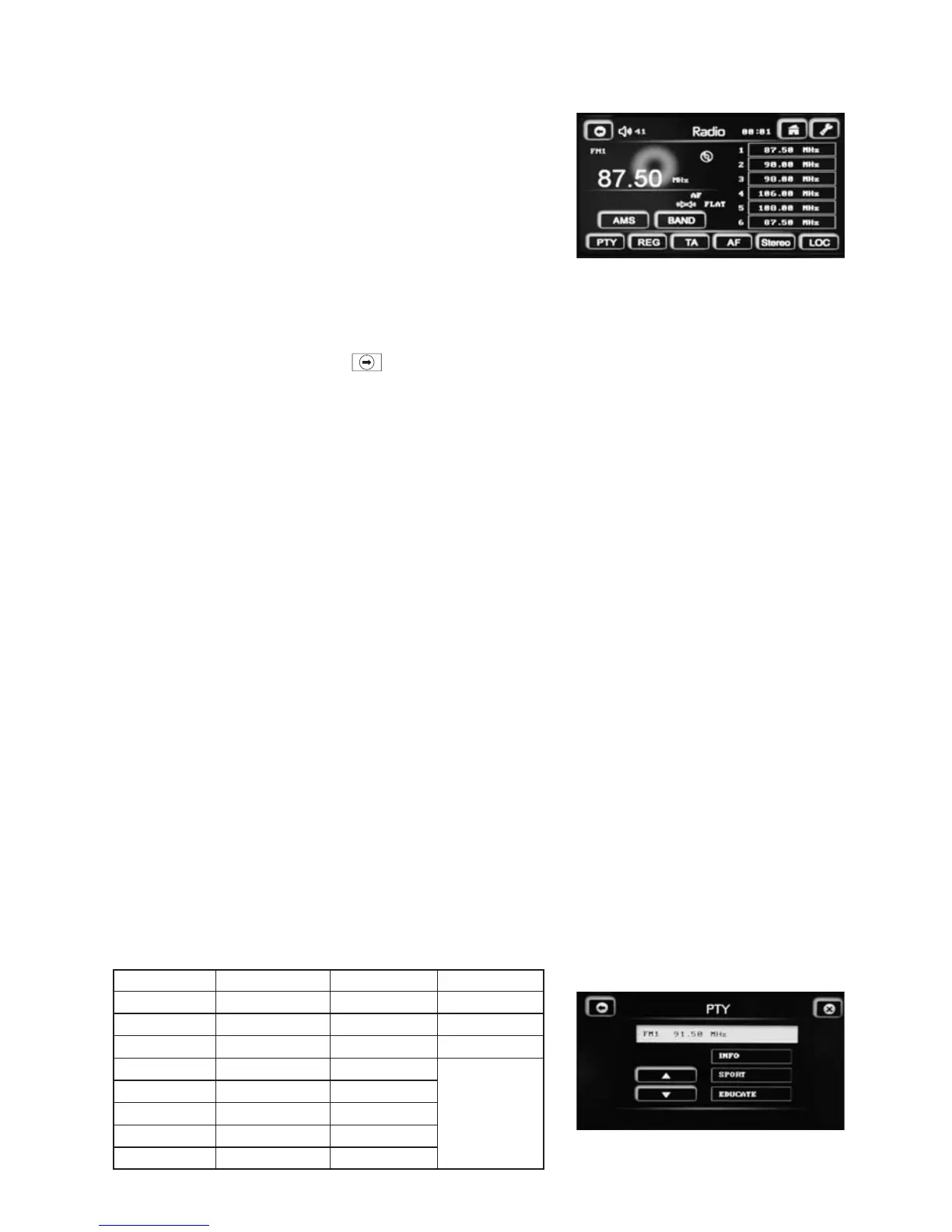 the button to enter the PTY search mode. You can select the type by touching the ▲