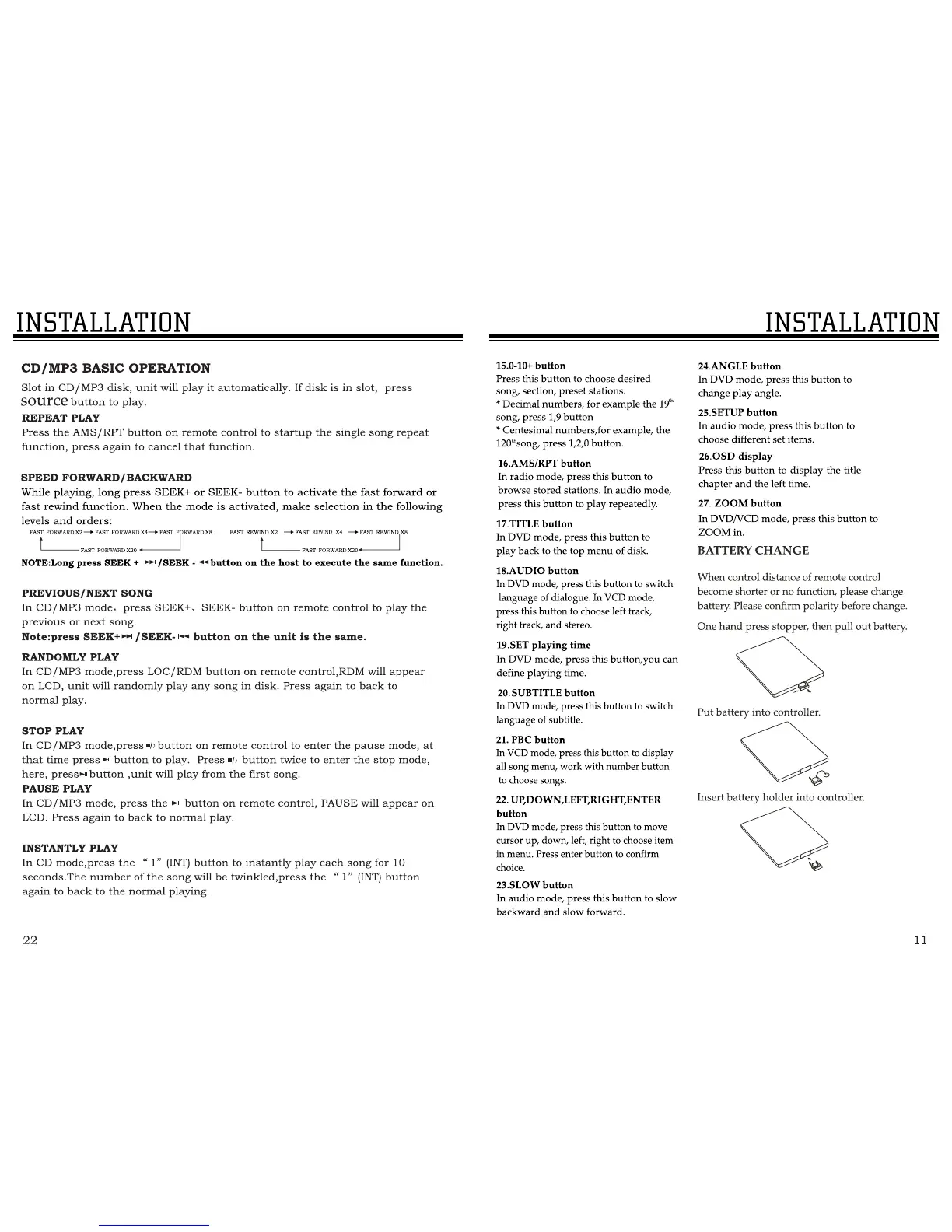 Ssl SD440USA - INSTALLATION; CD;MP3 Playback Modes; DVD Playback Features