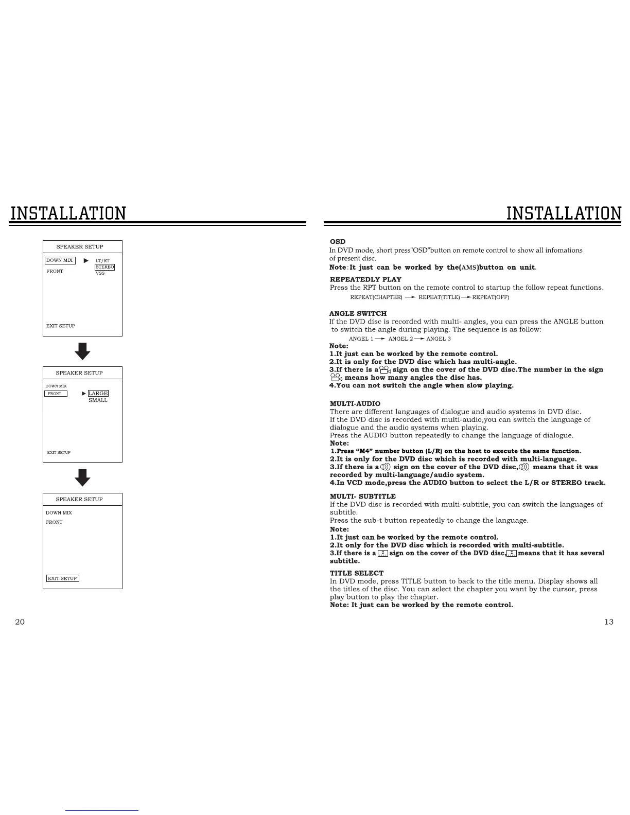 Ssl SD440USA - INSTALLATION; DVD Menu and Angle Switching; Multi-language Audio and Subtitles