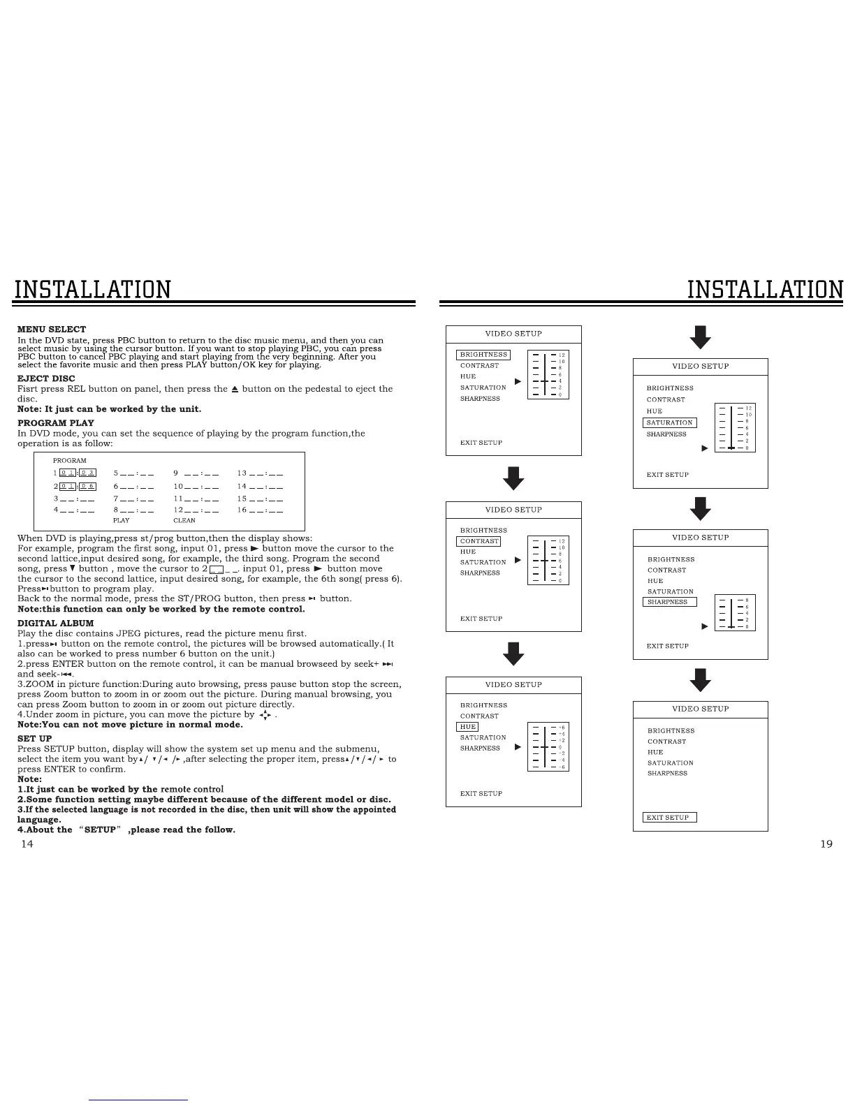 Ssl SD440USA - INSTALLATION; Disc Menu Navigation; Video Display Settings