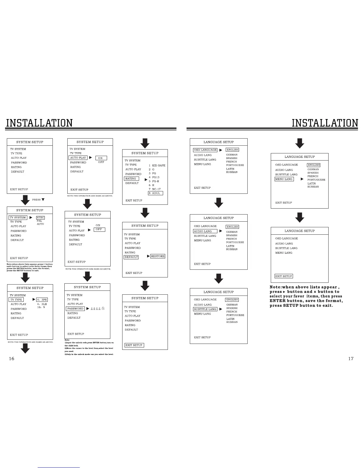 Ssl SD440USA - INSTALLATION; System Setup Examples; Language Setup Examples