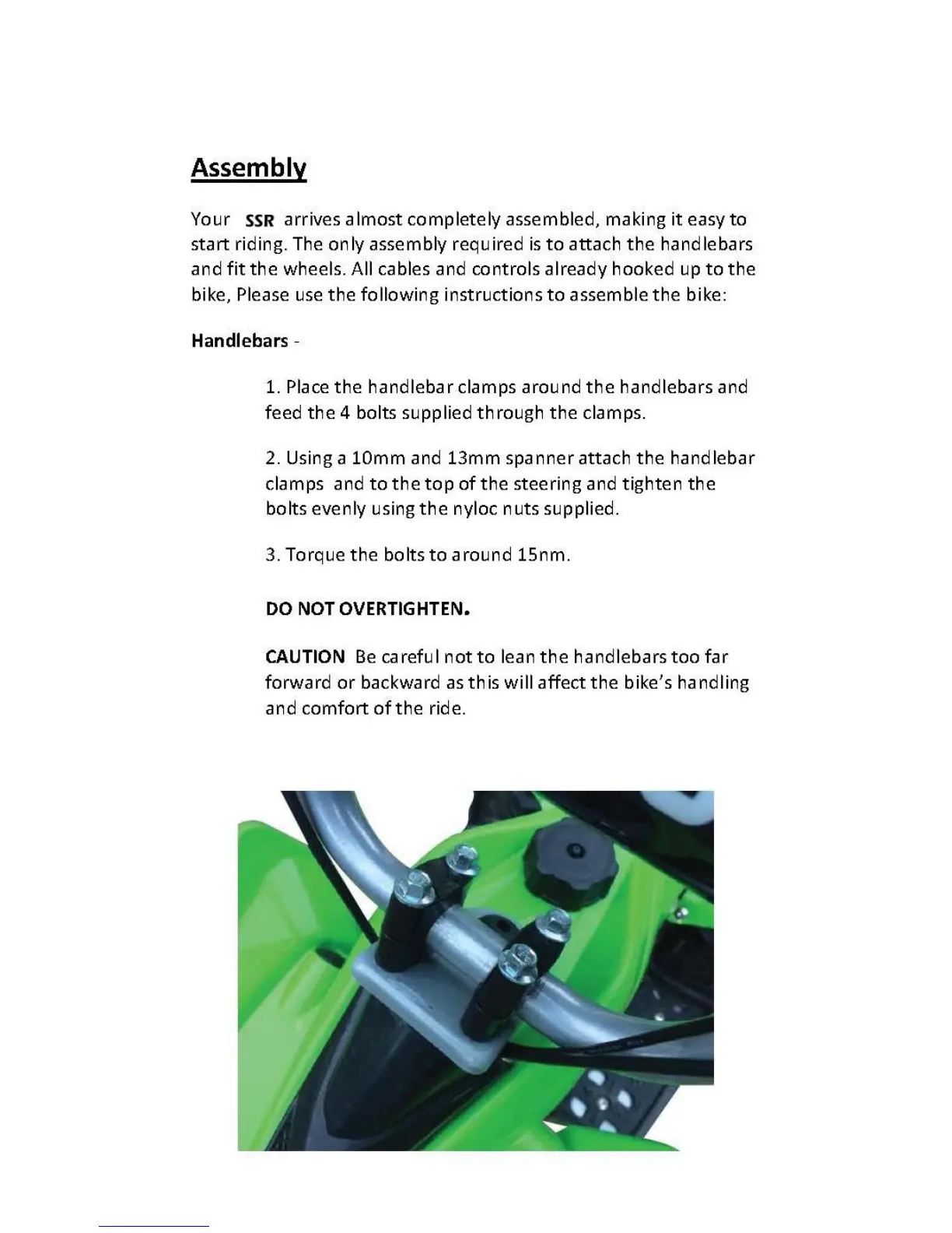 SSR ABT-E350 - Assembly Instructions; Handlebar Assembly